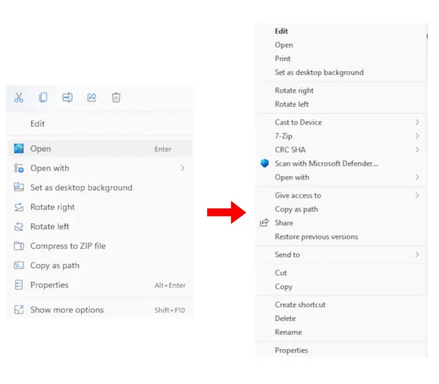 Con Windows 11, Microsoft ha aggiunto un nuovo menu contestuale che segue il linguaggio di progettazione Fluent aggiornato. Ha un design minimale, ha angoli arrotondati , interfaccia utente trasparente ed elementi di design che seguono l’interfaccia mobile. Ciò che è degno di nota è che Microsoft è andata avanti e ha rimosso alcune delle opzioni tradizionali dal menu di scelta rapida. Ad esempio, se fai clic con il pulsante destro del mouse su un file o una cartella, non vedrai l’opzione di condivisione avanzata o l’opzione per creare subito un collegamento.