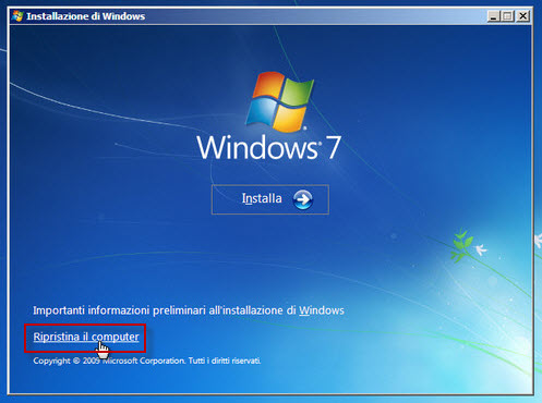 - Accendi il PC, inserisci il disco di Microsoft Windows 7, a fai partire l’avvio da CD/DVD (le modalità per far partire il computer da CD/DVD cambia da PC a PC, se non vedi nessun messaggio appena avvi il pc con scritto BOOT MENU, devi entrare nel BIOS per impostare l’avvio da CD/DVD)