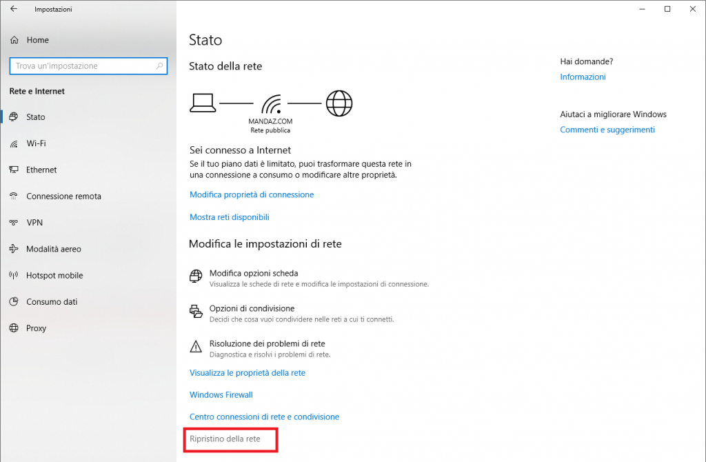 La procedura per risolvere il problema è molto semplice, si tratta di resettare i parametri di rete dalle impostazioni.